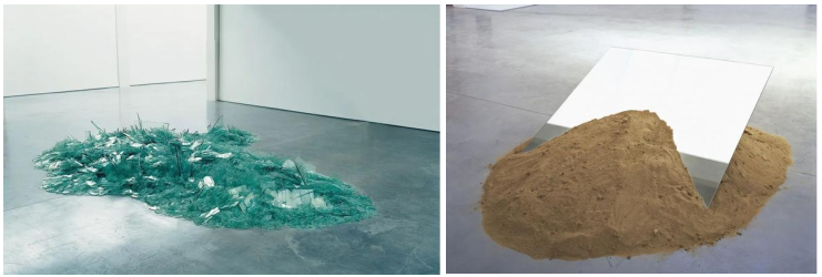也许是突然厌倦了奢靡浮夸,Smithson“消失”了三年,1964年回归后搞起了极简风,玩起了玻璃渣和镜子。