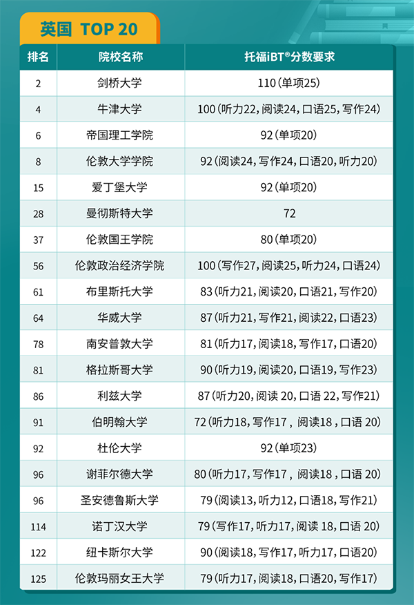 那么要进入世界级名校,尤其是香饽饽的TOP50之列,托福需要考多少分呢?来看具体院校的托福分数要求!