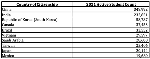 不久前,美国移民与海关执法局公布了2021年海外留学生与访问学者项目(SEVP)数据。