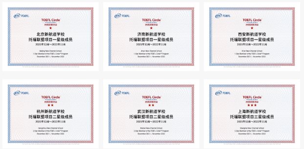 新航道共有6所学校上榜,其中新航道上海学校被评选为托福联盟项目三星级成员。