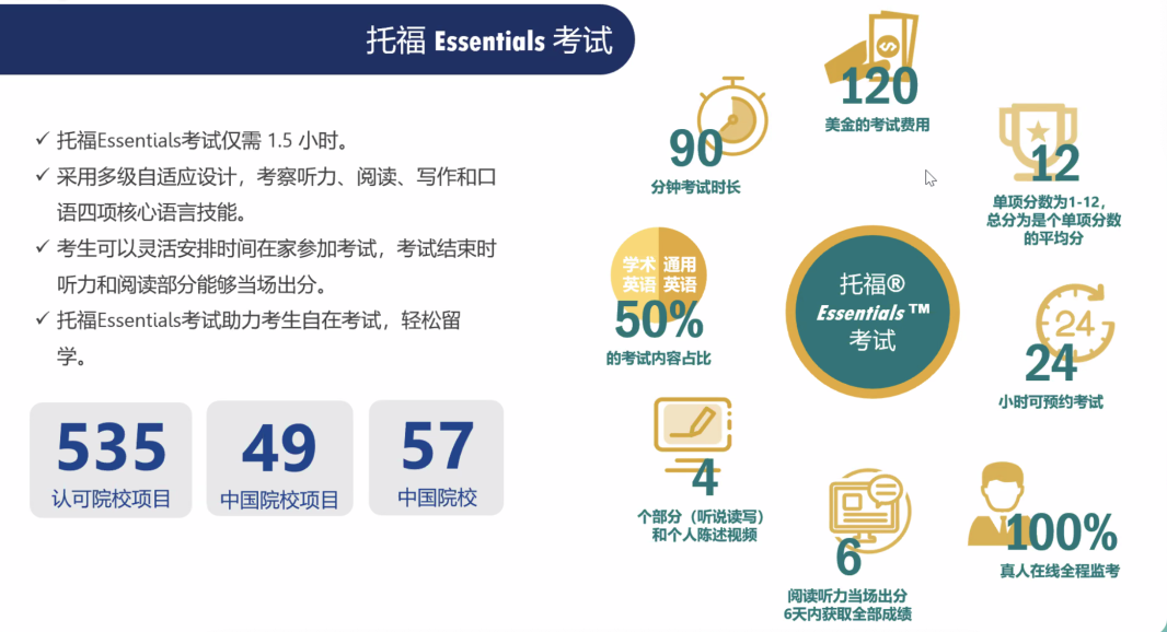 ✅ 托福Essentials考试助力考生自在考试,轻松留学。