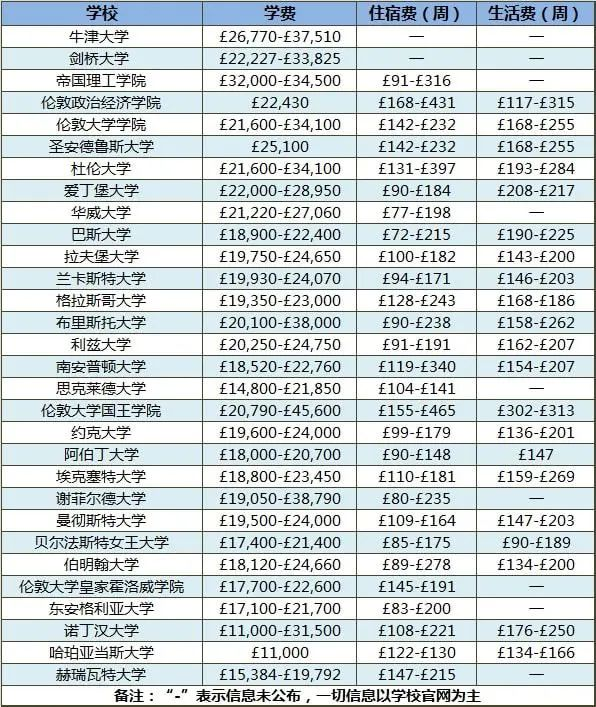 2022年英国TOP30大学的留学生平均花费,如下图: