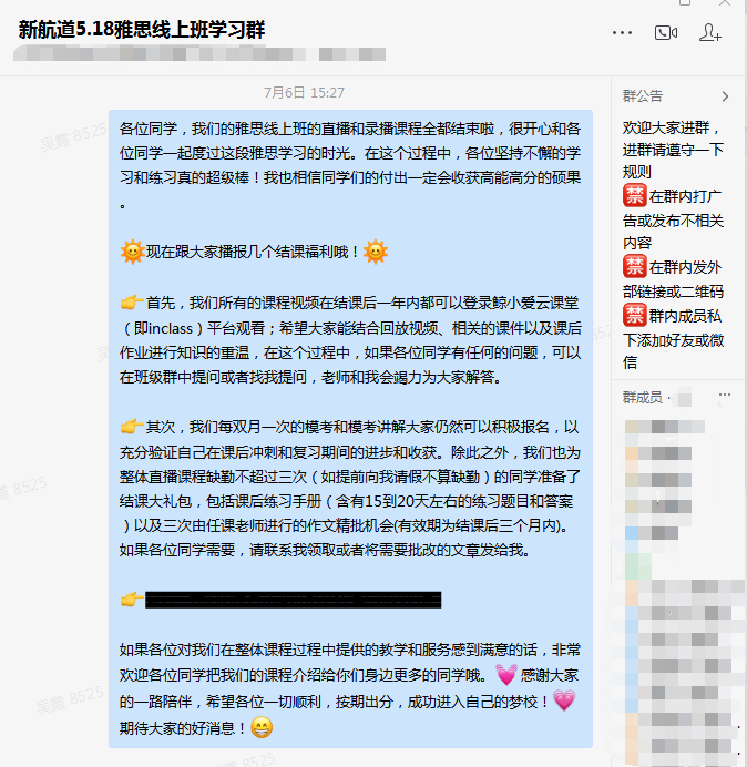 结课后,停课不停学,群内老师持续为同学提供为期1年的答疑服务。