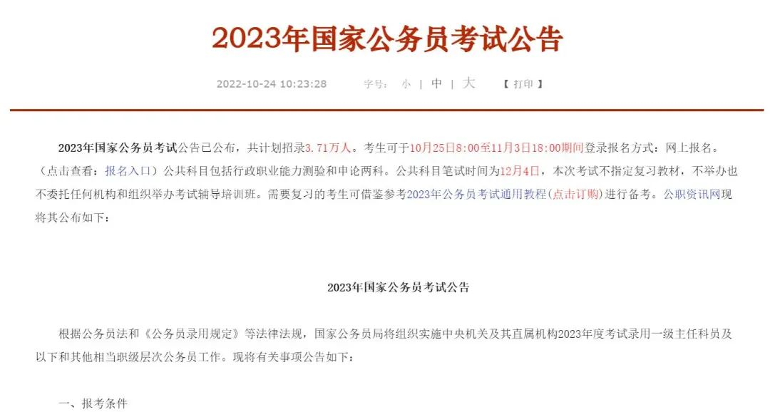 今天, 2023年国考公告正式发布!计划招录3.71万人!