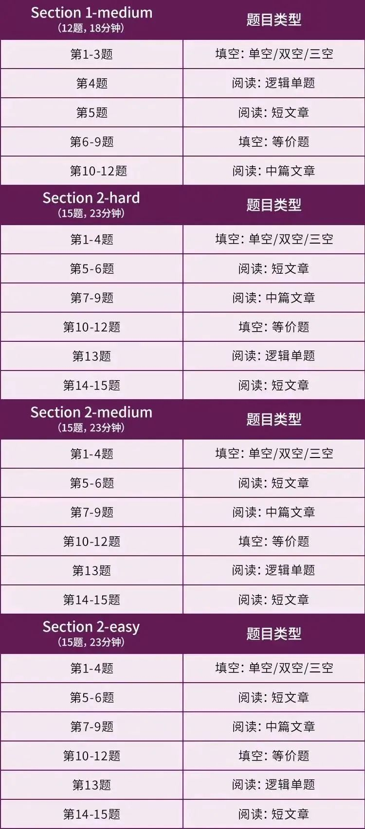 - Verbal或Quant内2个Section,仍然保持自适应关系;