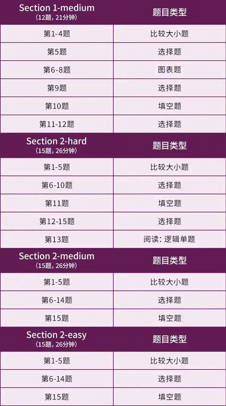 - Quant从原来2个Section共40题,减少为2个Section共27题;