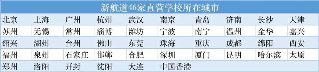 一、新航道国际教育集团下辖46家培训学校均为直营分校,无加盟校。