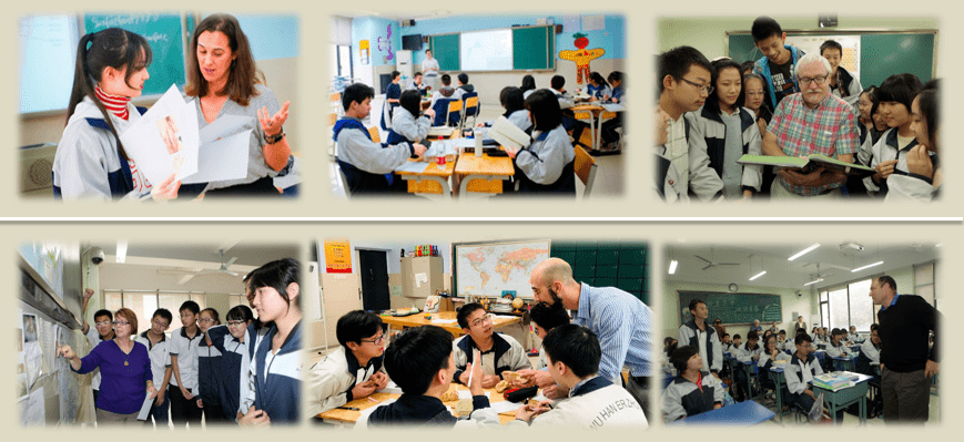 与校领导、中外教师和学生面对面交流,对各项工作提出指导意见。
