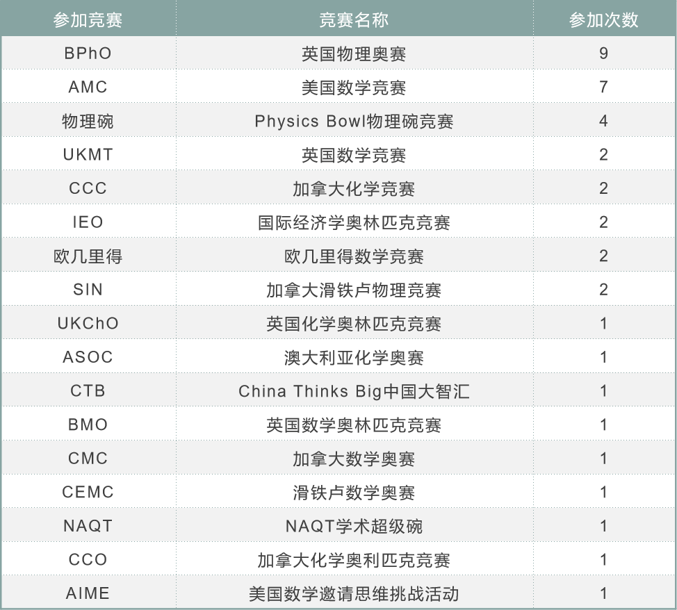 发现没,不是几乎,是所有申请到牛剑的学生,都一定参加了竞赛,最少的都会参加两个,多的甚至参加了四五个竞赛。