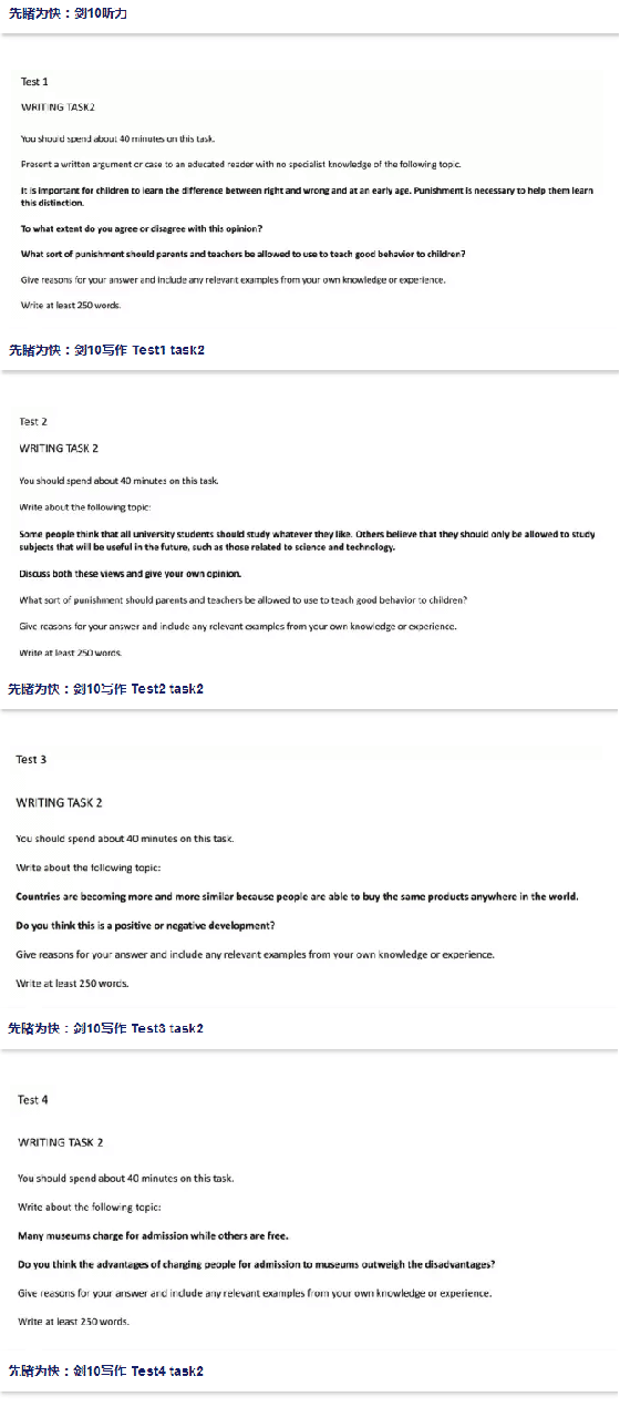 需要提醒广大“烤鸭”的是:《剑10》中收录的题目大多数是几年前的考题,少部分是近几年的考题,请大家要客观看待《剑10》的作用。接下来新航道的雅思专家会对《剑10》的使用给出具体的指导,敬请关注。请大家先了解下内容,先睹为快吧!
