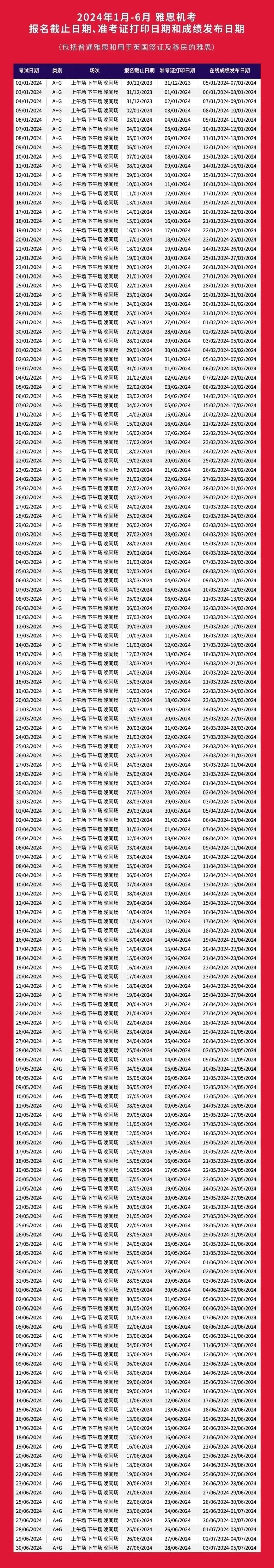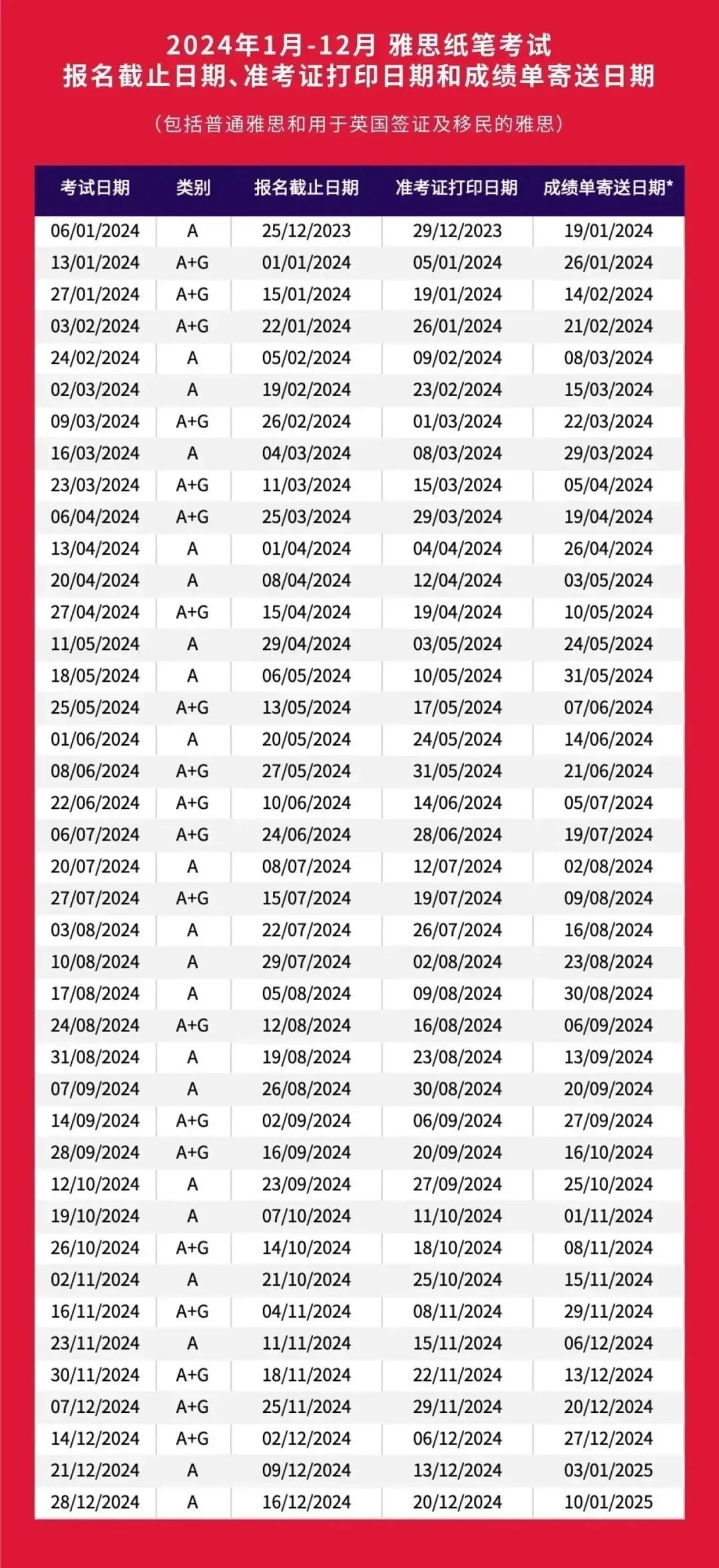 2024年1月-6月雅思纸笔和雅思机考全部考试日期开放报名