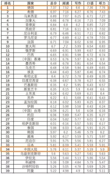 根据雅思官方发布的“2017年全球雅思成绩TOP40地区的成绩数据”,中国大陆地区A类总成绩5.76分,排名34。对这个数据没有概念?且听下文分解~