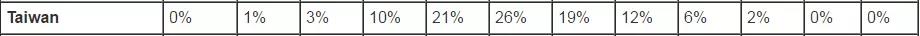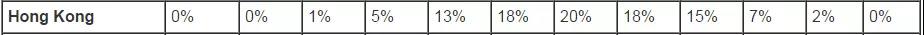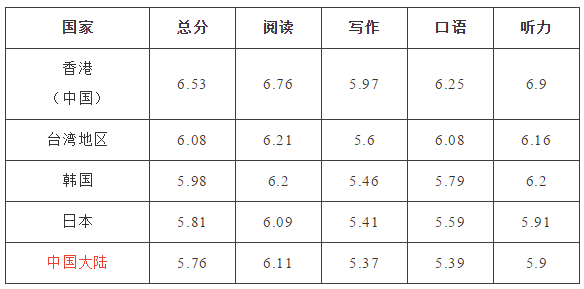 表单中分数的中国香港,高分优势显而易见,其7.5分与7.0分的考生比例高达15%与18%。对比可知,香港考生分数主要集中在5.5~7.5分数段,而中国大陆考生分数却主要集中在5.0~6.5分数段。