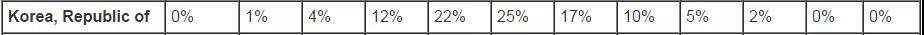 东亚国家及部分地区成绩对比