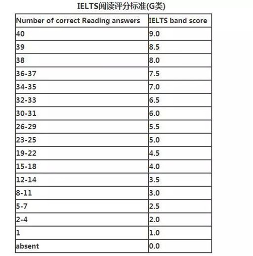 雅思阅读试卷包括40题,每答对一题得一分。满分的原始分均为40分,考生依据其原始分获取1 - 9分的等级分。