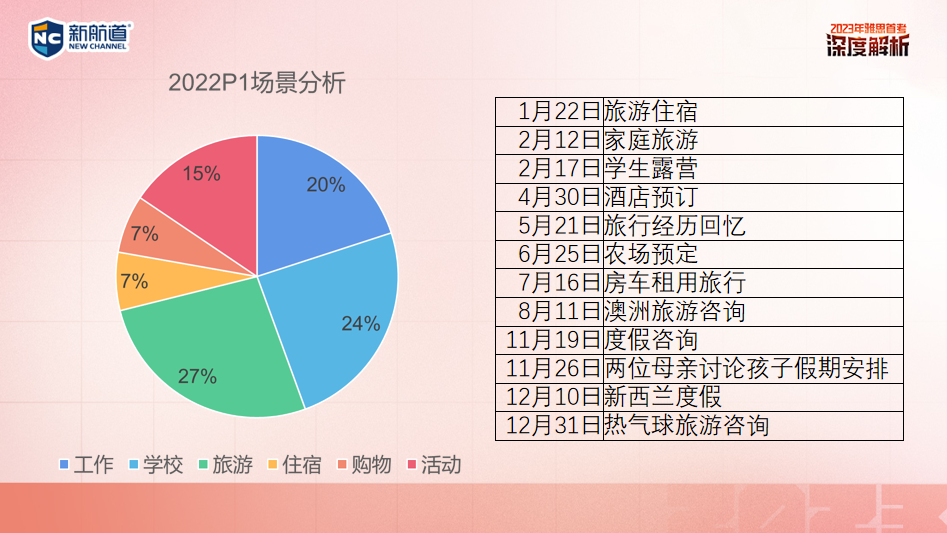 part 1的场景分析可以分为6大类,其中以旅游背景为主。这些题目大家都可以在剑雅中找到可以对标的同类型的篇目,因此大家好好好利用《剑桥雅思真题集》以及新航道研发出品的《剑桥雅思真题解析》。