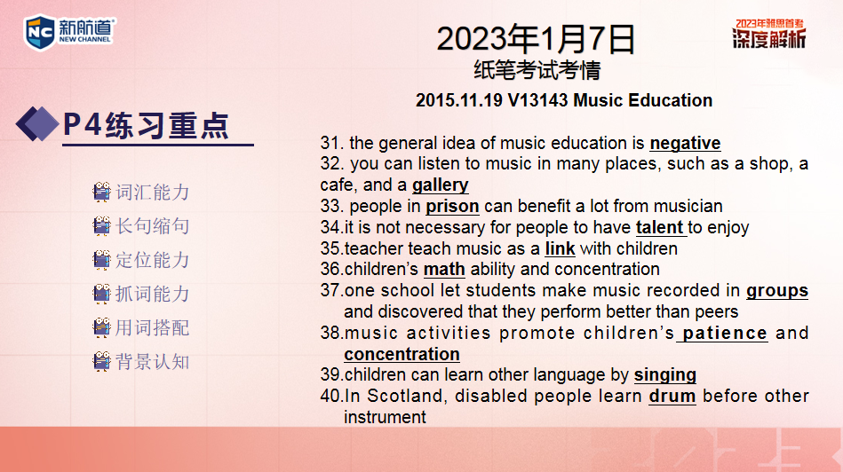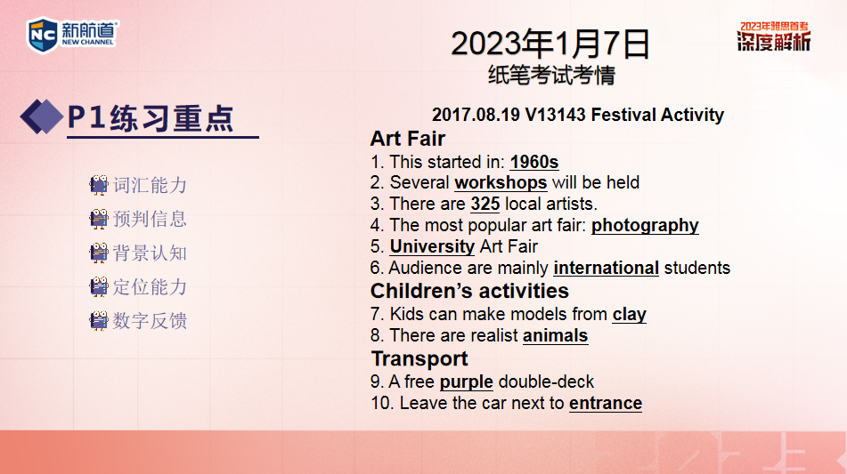 2023年1月7日,在本年度雅思首考结束后,新航道集结雅思听说读写四项经验丰富的老师为大家带来2023年雅思首考深度解析公开课直播。