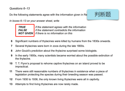判断题主要考察大家的逻辑思维,一般分为“True/False/Not Given”或者“Yes/No/Not Given”(纸笔考试)这 3 个选项。