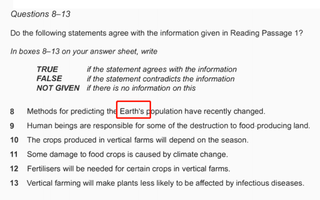 遇到“填空+判断”组合时,先找有“数字”“大写”“引号”的大题开始做。因为“数字”“大写”“引号”这三个东西叫做不变量,在雅思阅读考试中做同一替换。