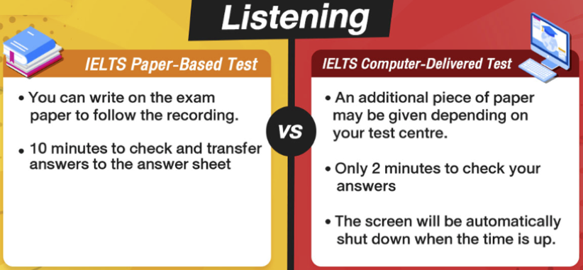 在听力方面,雅思机考需要在听的过程中直接把答案输入电脑。纸笔考试会有额外的10分钟来誊写答案。