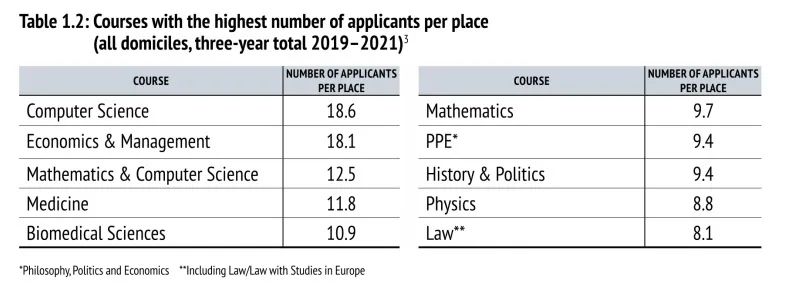2019-2021牛津大学热门专业申请数据