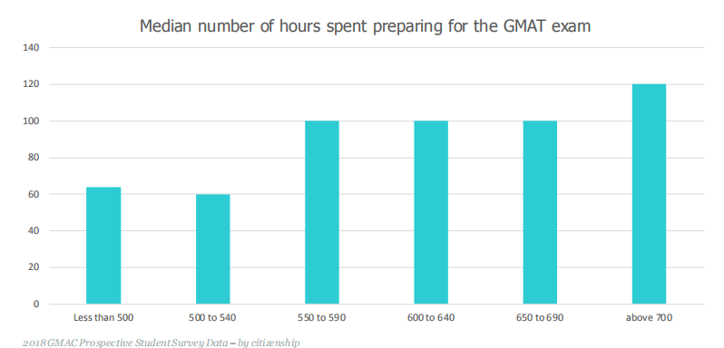 这张图显示的是大家备考的小时数,550~690分的同学平均备考100个小时,700+的同学平均备考120个小时。