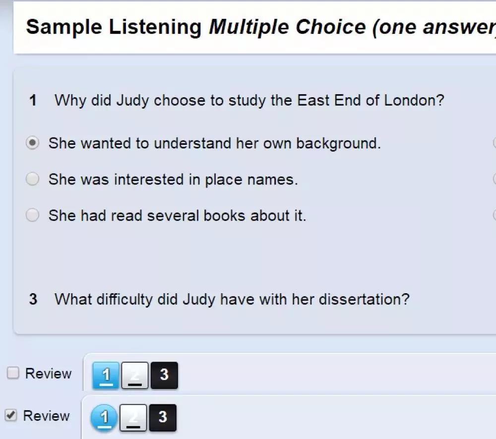 机考:在雅思机考中,每一道题目的编号会在电脑屏幕的下方排列显示,当你完成答题后,编号颜色将会发生变化。因此在机考中,缺漏填写答案的几率将会大大降低。