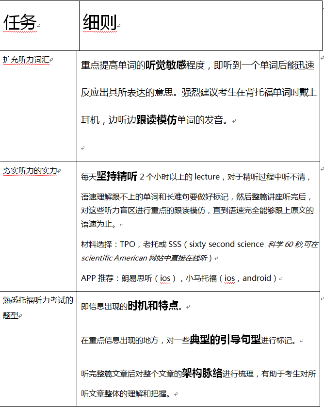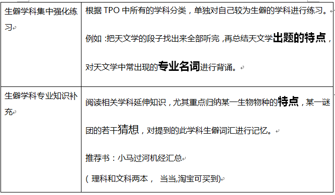 下面是针对听力实力,针对托福学科的一个备考建议,备考资料主要涵盖TPO和SSS两种材料。具体的方法也在已经其中体现出来。