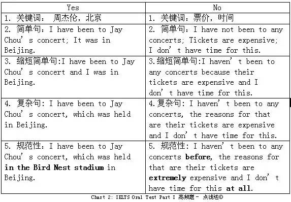在基本的“寒暄”话题(超高频题目)之后,考官会问到其它的话题。我称他们为高频题目,比如说电影类,音乐类,节假日,读书,名人类等等。以音乐类话题为例:“Have you ever been to a concert before”? 就问题本身而言,它的难度并不高,考生只需要根据实情来回答:Yes(去过)或者No(没有去过)。但是这样简单的“Yes or No”的回答过于简单,而且可能就给考官一种没有礼貌的感觉。为了避免这种问题,大家依然可以采用“点线法”。