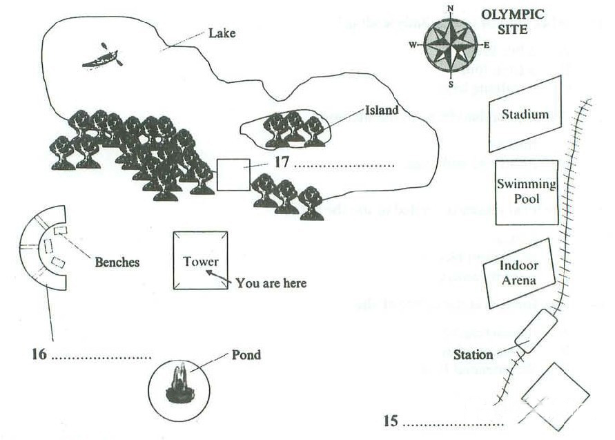 e 听录音。听录音时最重要的一点是要以说话人的前进方向为准,在图中划出说话人的行走路线,如果不太好把握整个行走路线的话,那就重点关注一些表示位置关系的方位词,比如next to, opposite, behind, inthe corner of , on the other end, 有时直接依据这些方位词就可以判断。