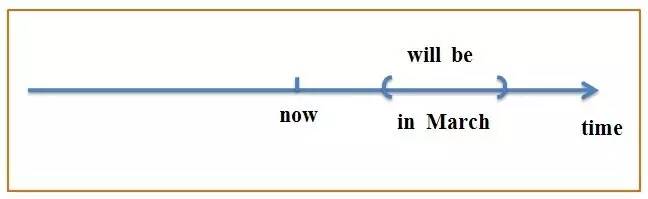 时间副词in March是一个在未来的括弧,还未发生,所以在now的右边,而且动词前需要加一个助动词will标志一下。