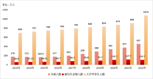 据相关数据统计,2022年国内研究生考试人数达到了457万,随之而来的是考研国家线整体普遍上涨,2023年预计将突破500万大关,形势只能更严峻...