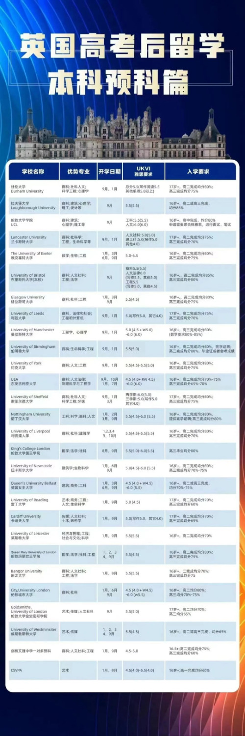 学生可以学习到与普通大一相同的专业课补充语言基础,可以较好的适应英国学习生活。能够以比较基础的成绩和雅思水平申请到排名比较靠前的学校。