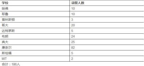 目前,据民间不完全统计,藤校今年在大陆高中内共录取186人。
