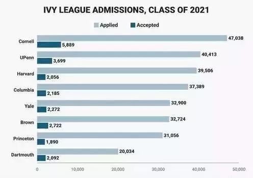 而根据美国招生办的数据显示,今年中国大陆申请常春藤的学生约为4万人。
