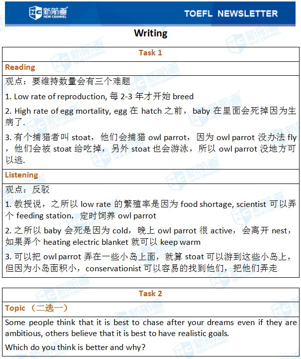 阅读部分依然是常考的历史学和生物学方面的文章,包括:青蛙、皮甲虫、猛犸象、欧洲城镇的发展过程、玛雅文明消失的原因等,考前可以多做一些这方面的练习。
