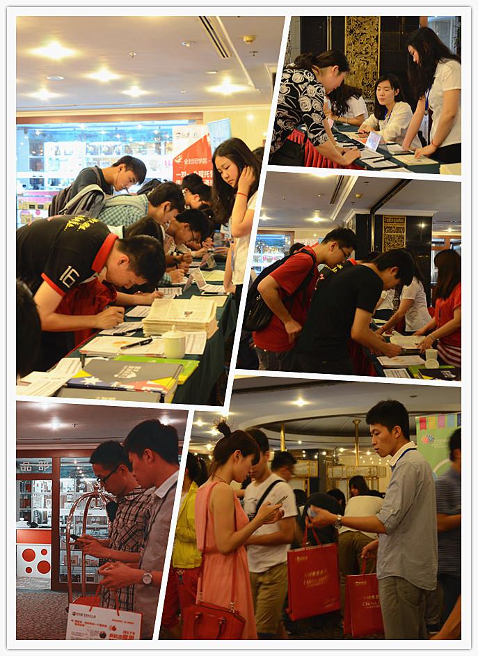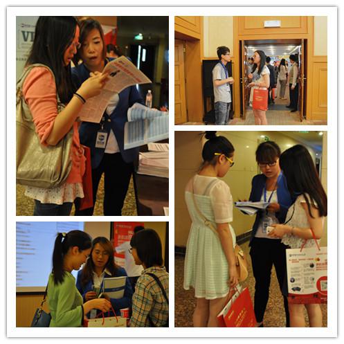 参会人员到场签到 新航道工作人员向参会者赠送礼品