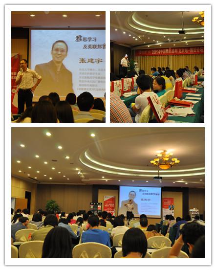 中国雅思梦之队十年功勋级师资、伦敦大学教育学硕士、新航道雅思口语主讲、新航道教学管理部总监、《胡敏雅思第七代法宝教程》编著之一的张登老师随后登场,他为大家讲解了雅思口语正本清源以及2014雅思考情。