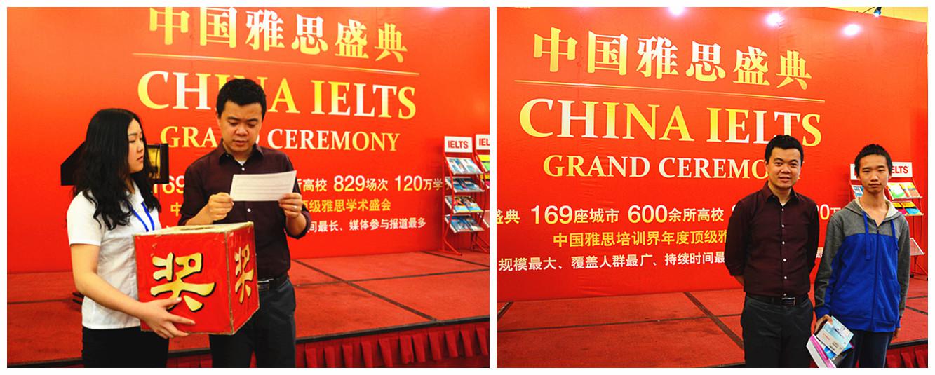 此次盛会的重要一个环节就是抽奖,抽奖环节安排在每位老师演讲后,在现场抽出幸运观众,其中荣誉奖(1名):佳能IXUS数码相机、新航道2000元课程代金券和《剑桥雅思真题全解6&7&8&9》;幸运奖(2名):Apple MP3一个、新航道1000元课程代金券、和由杜思迅老师本人编著的《9分达人雅思写作真题还原及解析》。
