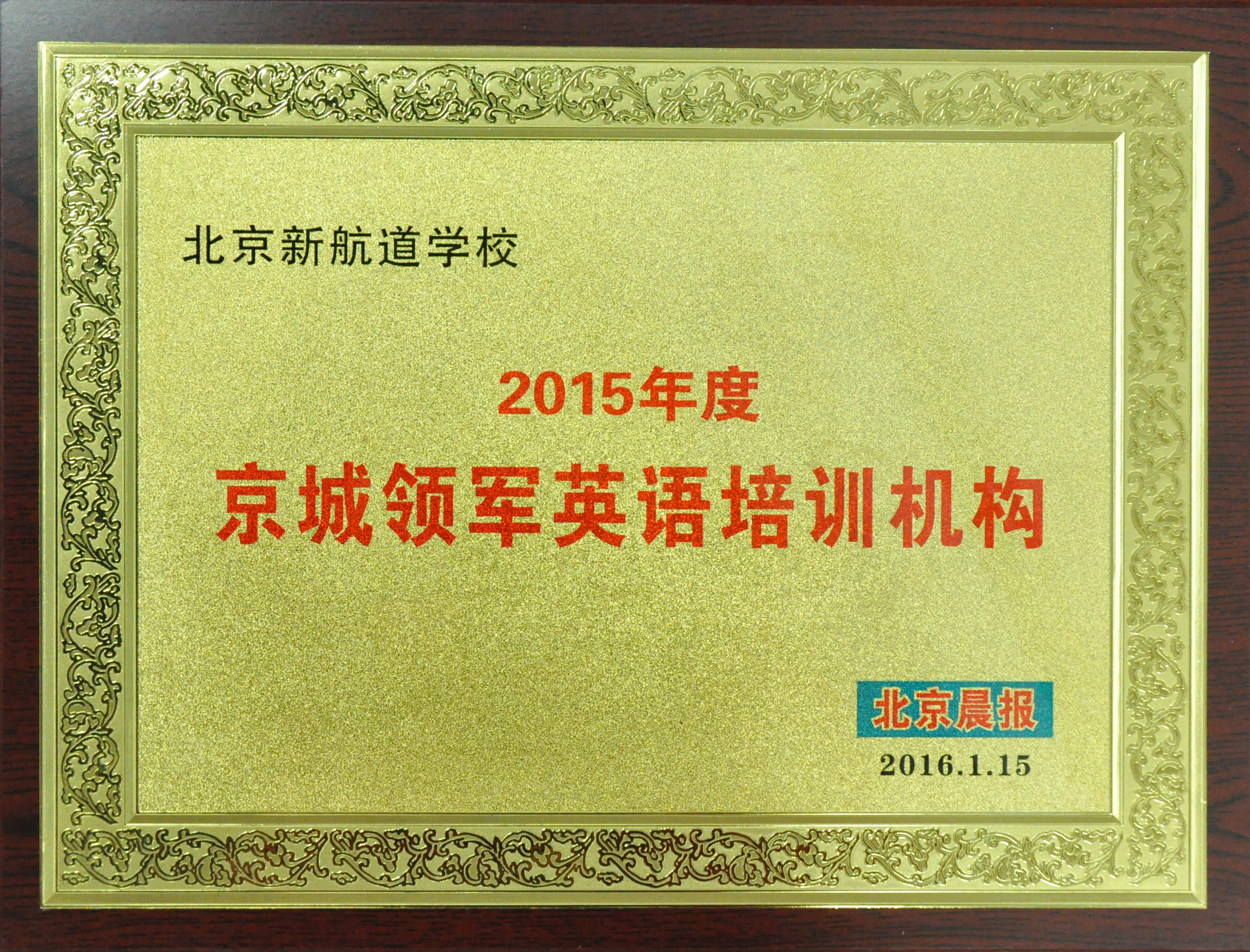 2016年1月15日,北京晨报携手首都师范大学隆重召开“首届基础教育改革论坛暨2015年京城百所特色校颁奖盛典”活动。新航道北京学校荣膺北京晨报2015年度“京城领军英语培训机构”。