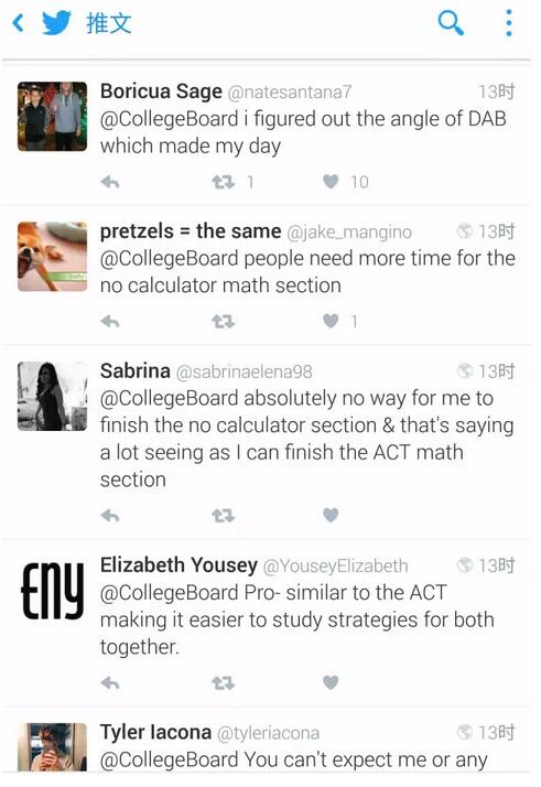 第三,数学部分中国学生感觉不难。多数使用计算器的题目都可以笔算,但有些题目还是用计算器确保无误。一些应用题和图表题会有较多的字句,但有些句子可以不用考虑,与解题无关。而根据考生在twitter上的留言,令多数美国学生印象深刻的是:数学部分做不完题,尤其是第3部分(不使用计算器的部分)。