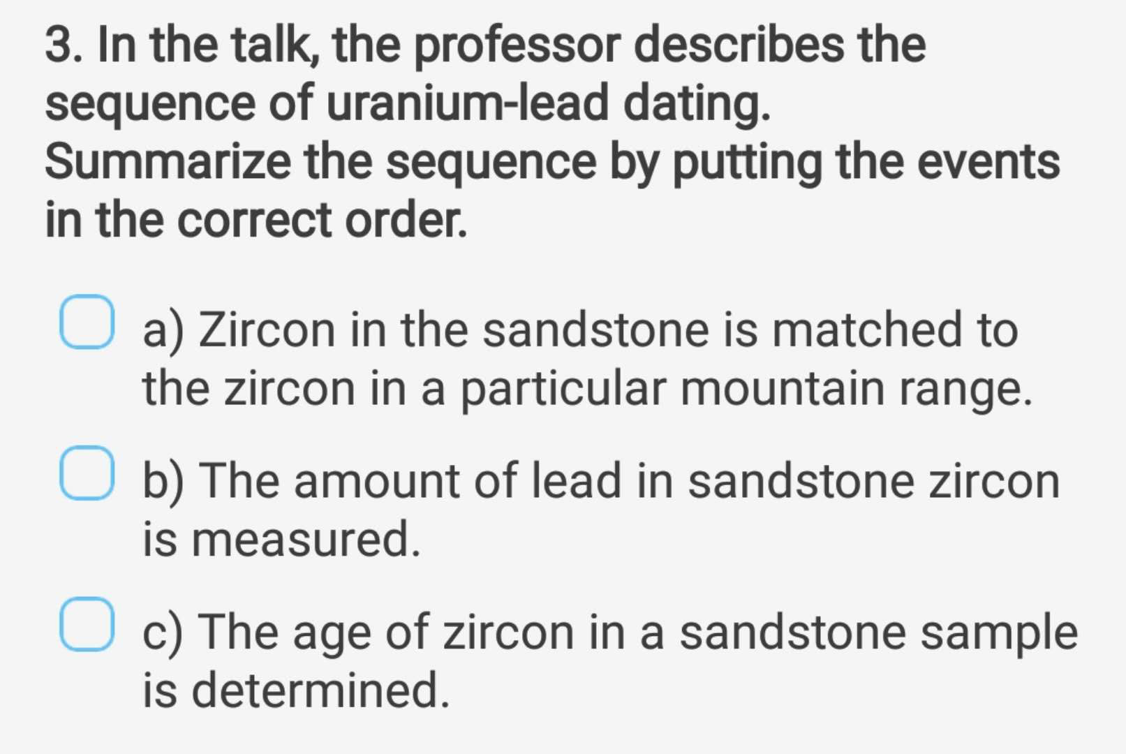 地质场景下出现排序题的几率大的惊人,甚至有些短对话都是配了一道可怕的排序题,所以大家再听地质的听力时,还要注意的另一个方面就是下面这类词: