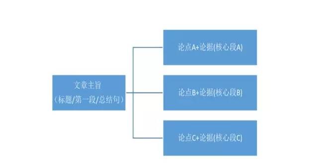 往往, 我们在写英文作文的时候,文章的标题反映了全文最核心的内容,段一般是背景介绍或者是话题导入,会亮出自己的主要观点。随后,从第二段开始就核心观点进行论证,在论证的过程中,采用的是论点句加上各种各样的论据的方法。 我们可以将这个逻辑抽象为下图: