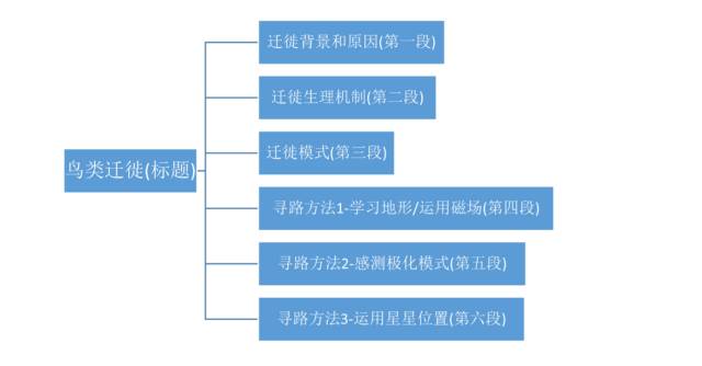 比如,在 Bird Migration 一文中,给出的总结句为 Scientists have proposed several methods that birds use for orienting themselves during their seasonal migrations. 句 子的宾语为 several methods,本文论述的核心为鸟类迁徙的方法。