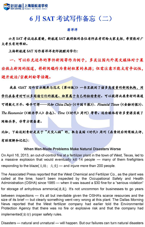 2014年6月SAT考试备考写作备忘-蒋洋洋