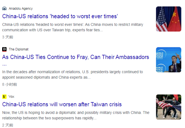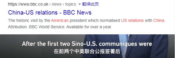 根据谷歌的“联想查询”我们可以看到相应的关键词,而且在最近的新闻报道中,对“中美关系”的称呼也是用的“the China-US Relations”。在央视(CGTN)主人王冠接受BBC采访的视频中我们也看到,主持人王冠使用了“China-U.S.”这样的表述。