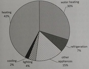 在个图表中,我们看到家用采暖的耗能占比,达到了总耗能的42%。第二位是热水器,耗能占比达30%。但其他家电、冰箱、照明及制冷等的耗能量则急剧下降,总占比只有28%。