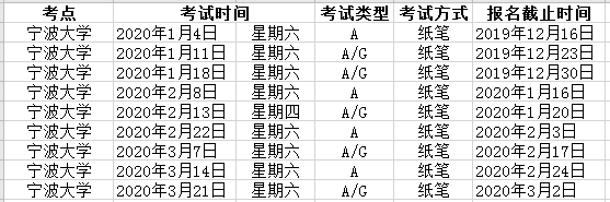 2020年1-12月宁波大学雅思考点(更多考试时间信息持续更新中……)