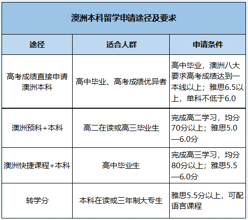 在申请条件方面,澳洲本科留学申请一般都需要满足资金、语言等基本要求,此外,不同的留学途径,要求也是千差万别的。