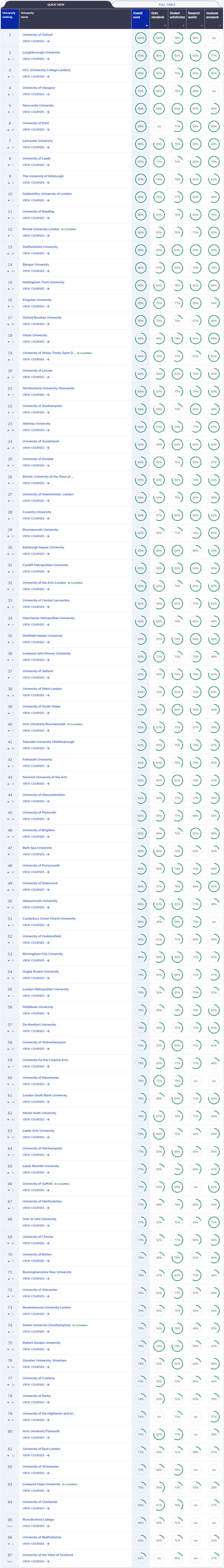 CUG完全大学指南在发布2022英国大学排名时,也同步更新了涵盖74个专业领域的专业排名。